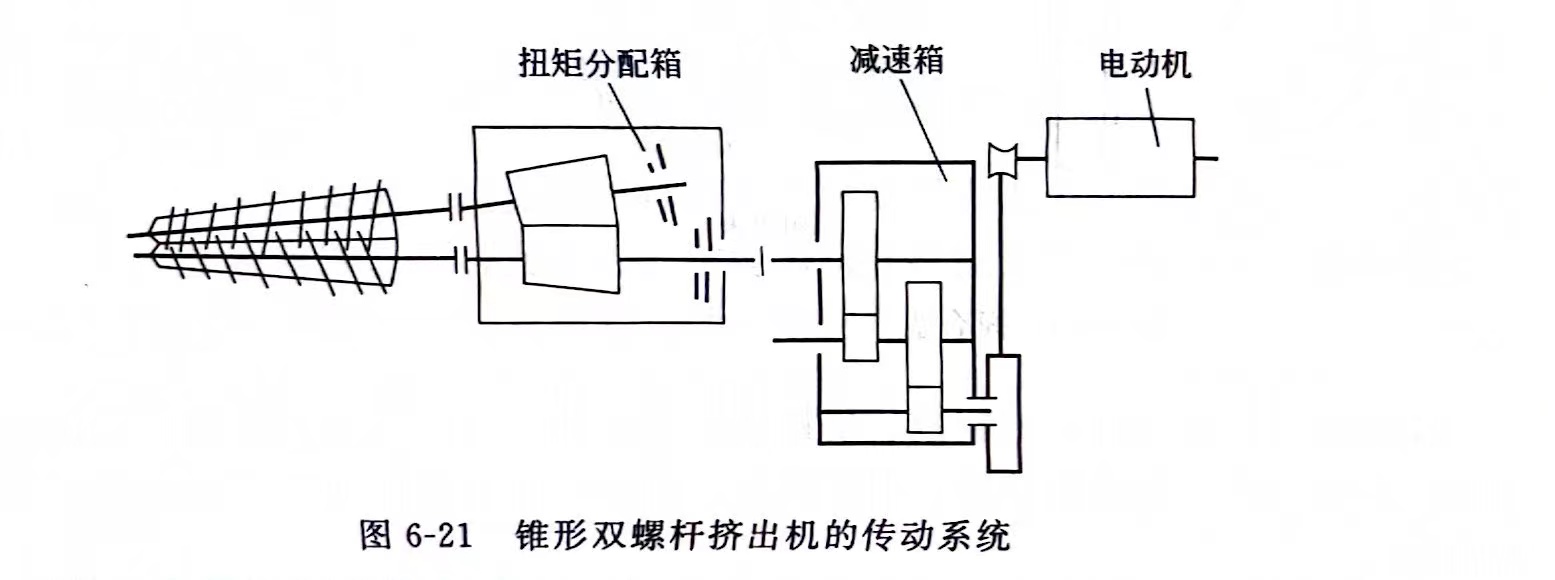 主要组成结构 双螺杆挤出机的传动系统主要由驱动电机(含联轴器)、齿轮箱、止推轴承等组成。