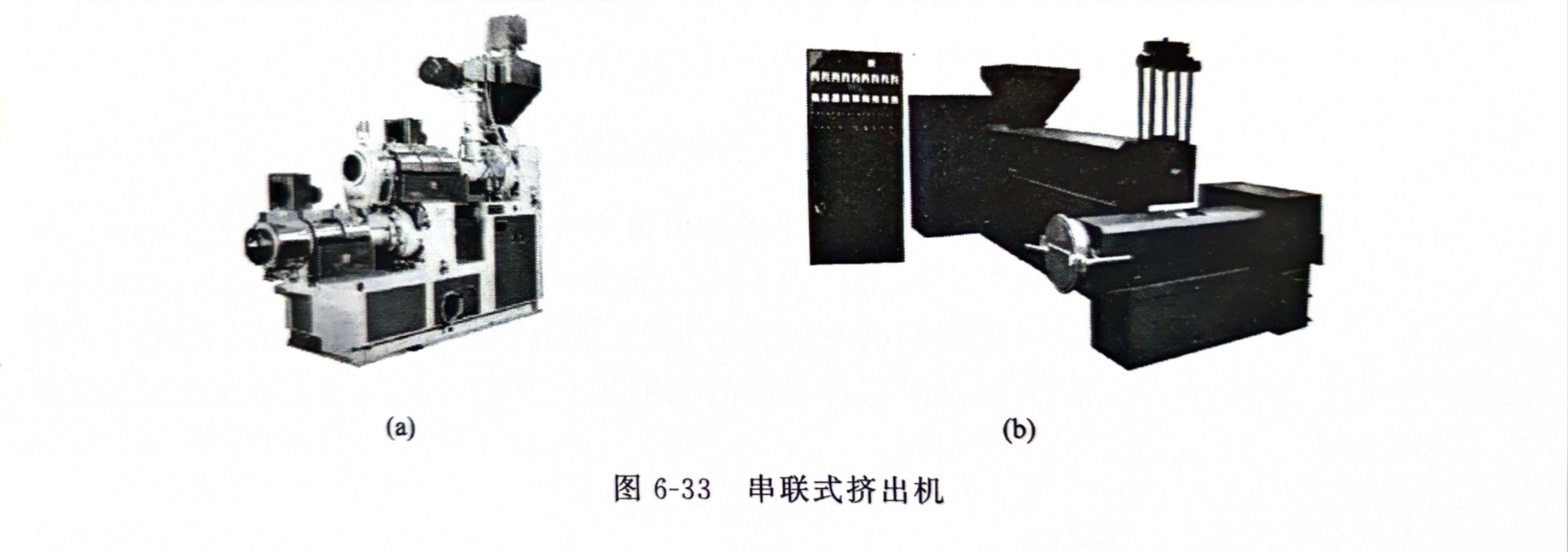 (1)串联式挤出机的结构 串联式挤出机由两段独立驱动相互串联起来的挤出机构成,其布置形式主要有两种: