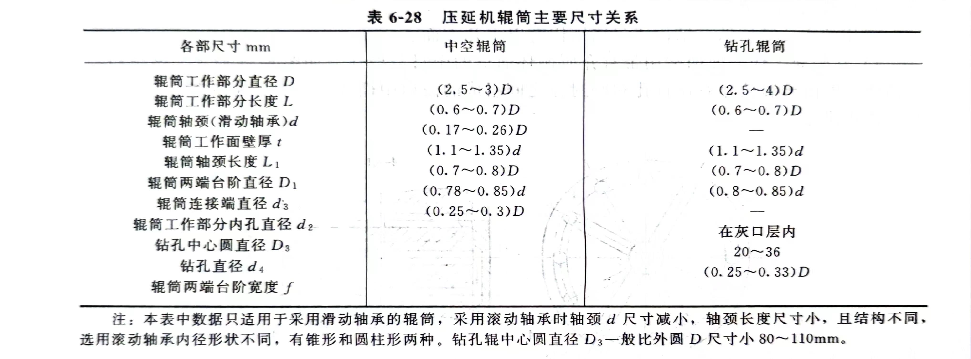 压延机辊筒主要尺寸如表6-28所示。