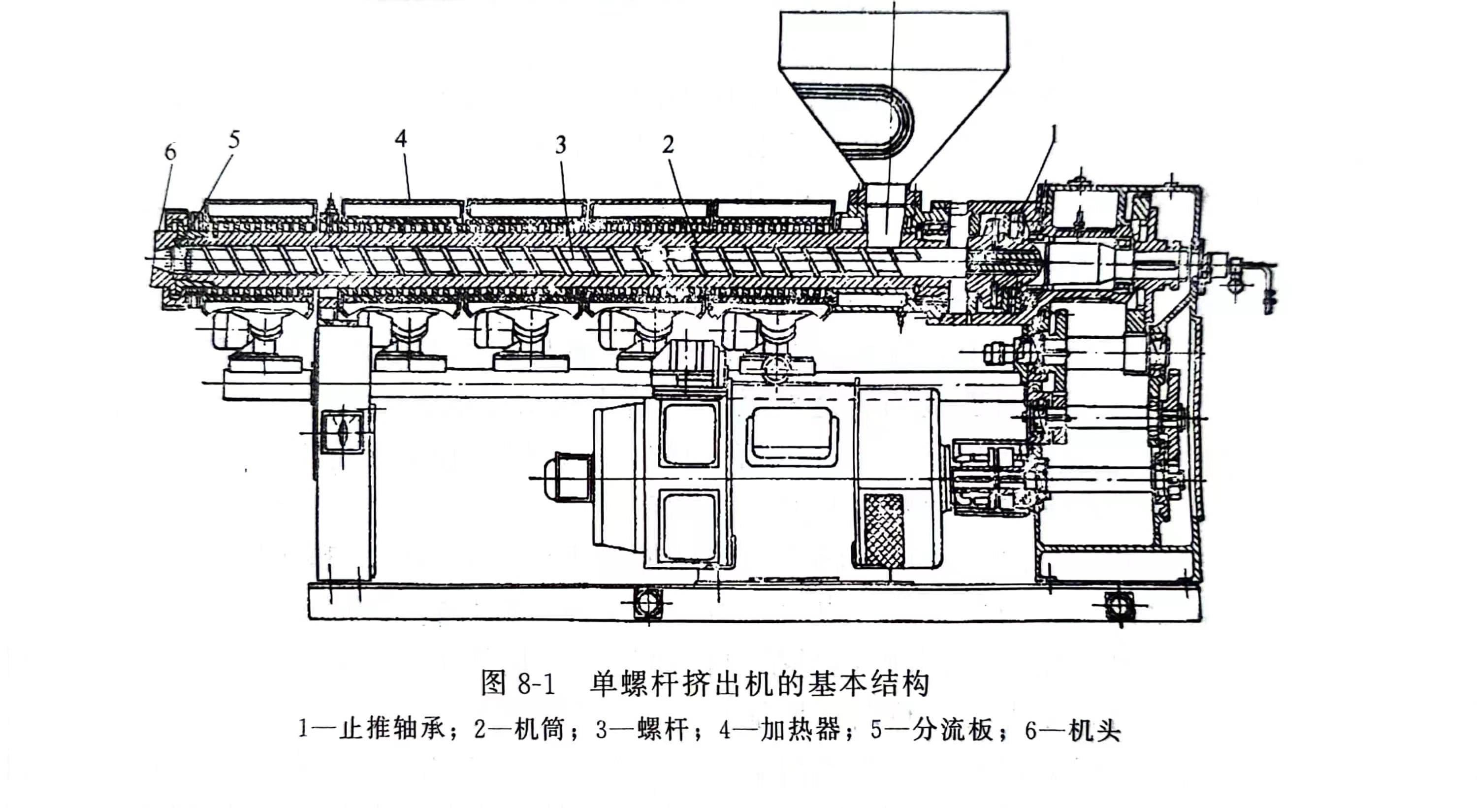 单螺杆挤出机的基本结构见图8-1,主要由以下部分构成。