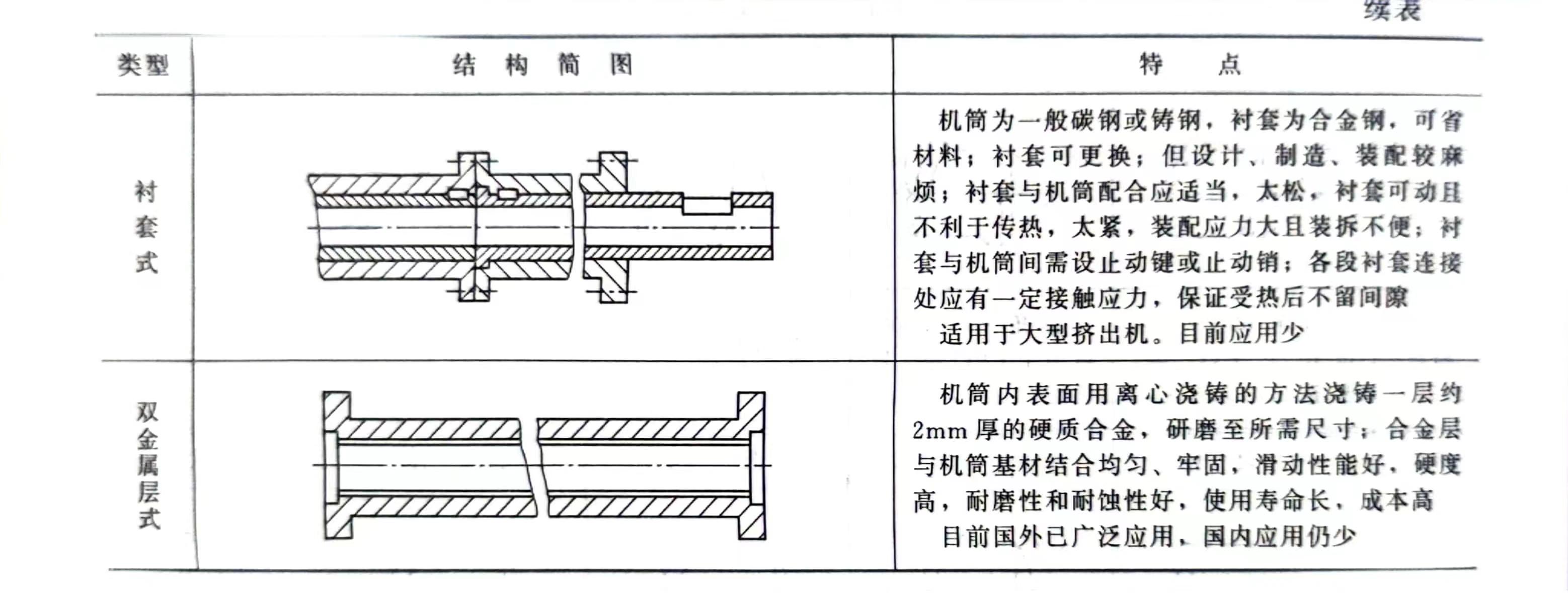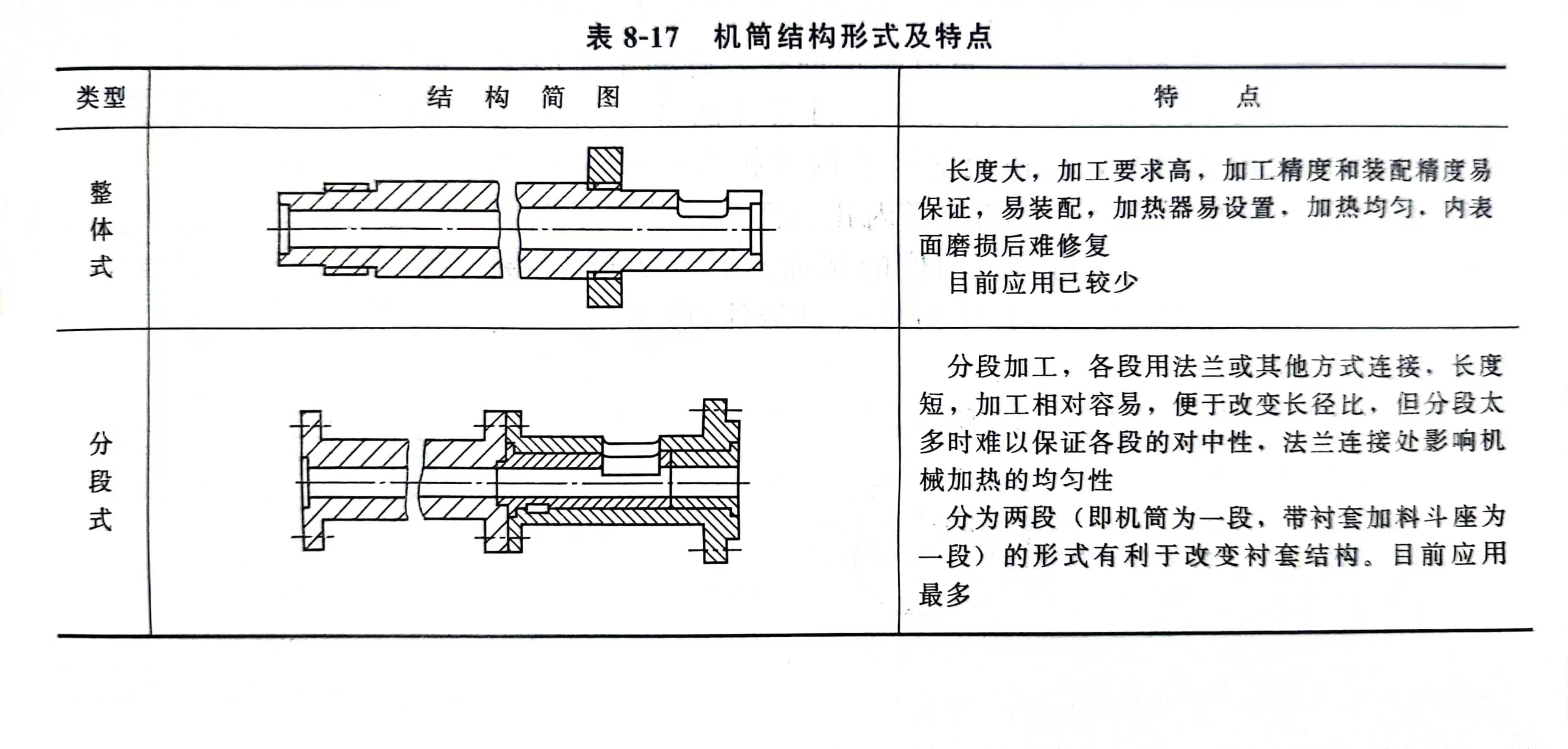 (1)结构形式 机筒的结构形式如表8-17所示。