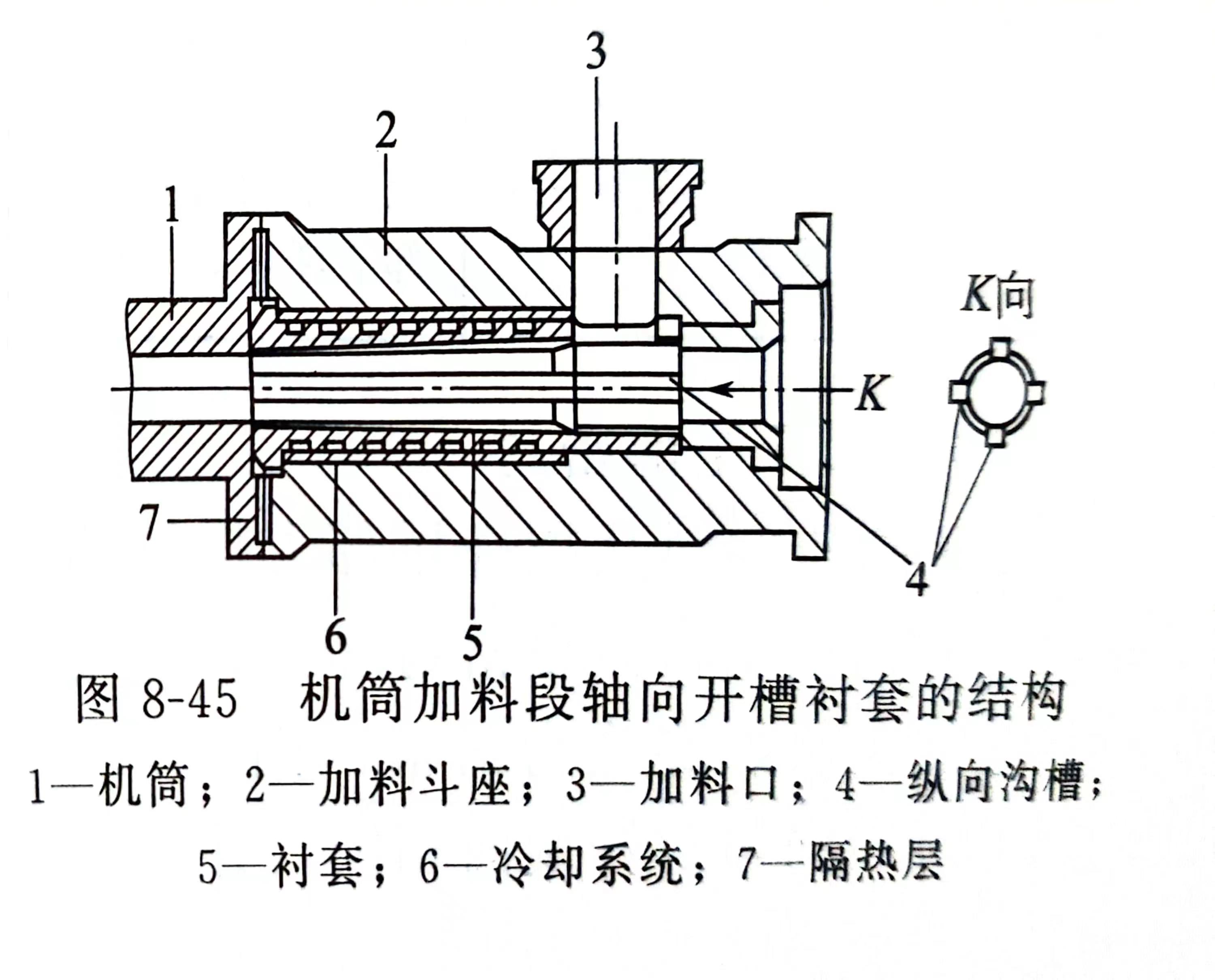 (2)机筒加料段轴向开槽衬套