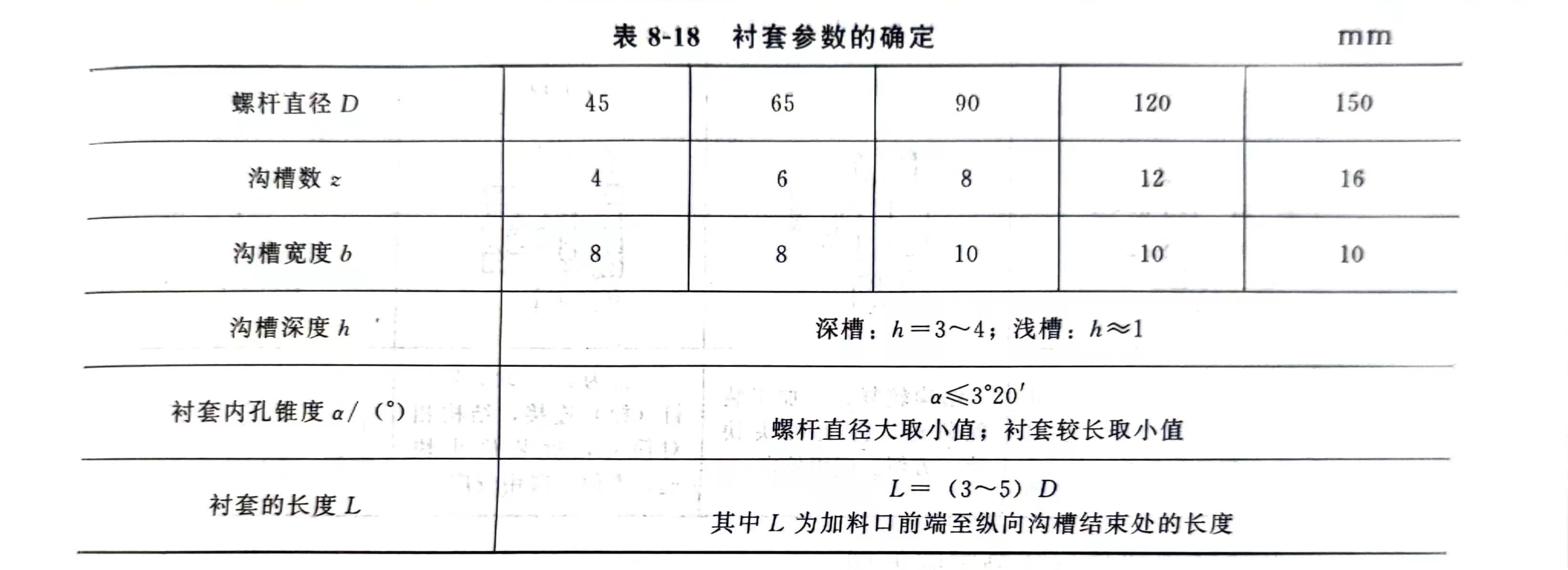 采用锥形内孔的衬套时,螺杆加料段的螺槽深度H:应稍浅。另外,由于采用了此种强制加料系统,固体输送率得到了大大提高,塑料在螺杆中的停留时间缩短,因此必须选用新型螺杆,以保证塑料的塑化和均化质量。