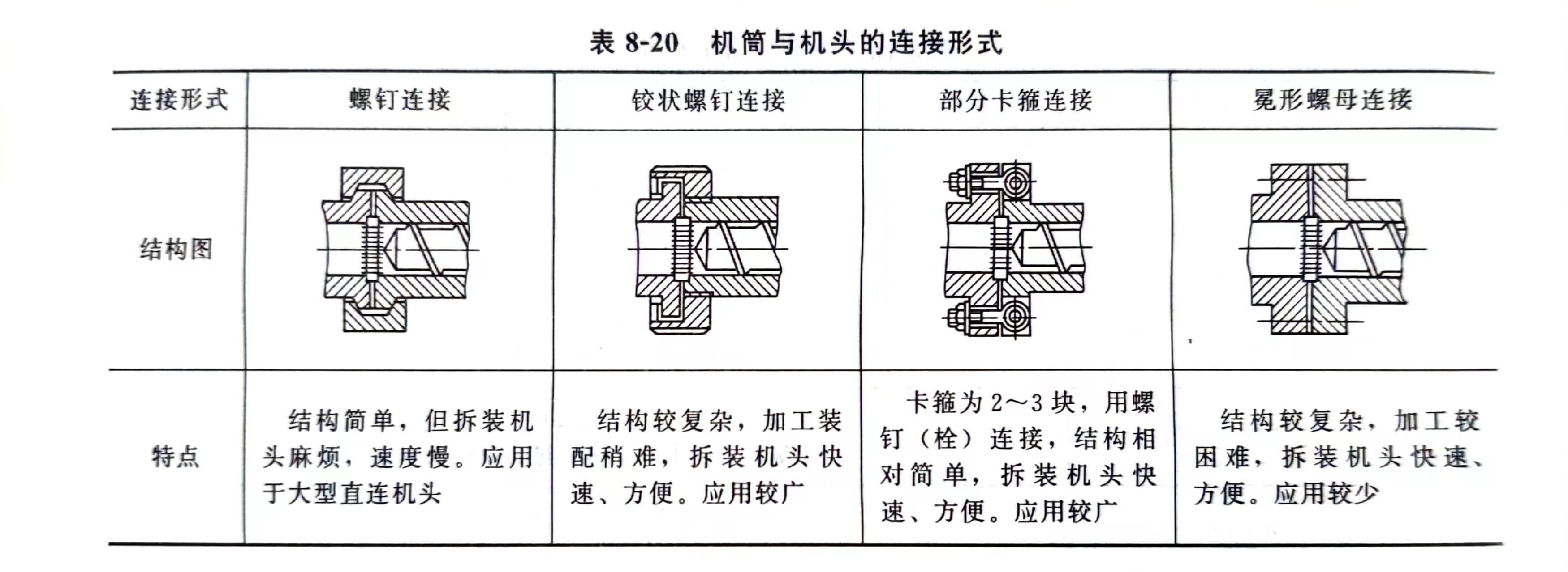 机筒与机头的连接形式如表8-20所示。