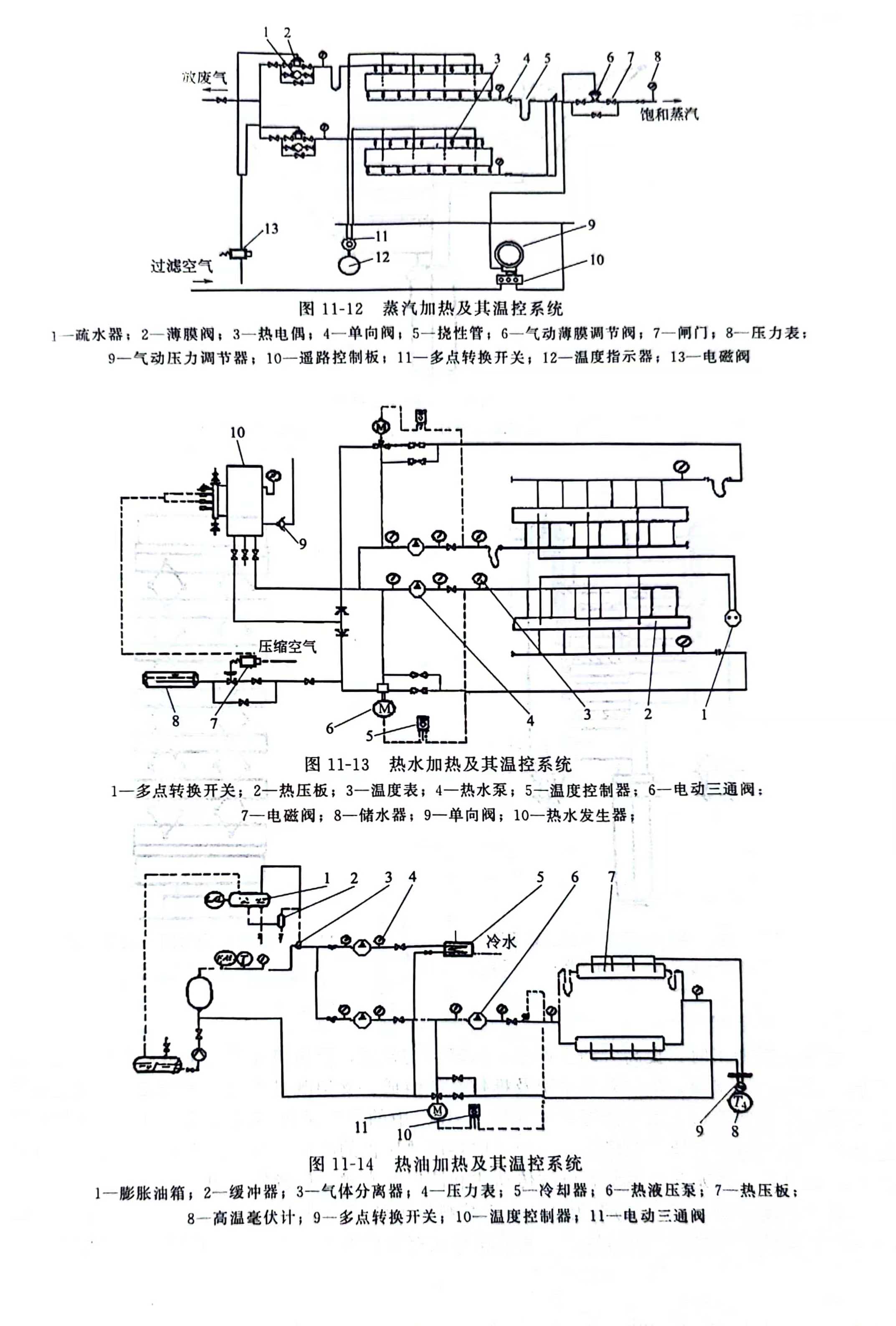 层压机的加热介质,一般采用饱和蒸汽、热水或热油。其中以热油为介质较为理想,因为油在大气压力下具有沸点高、不腐蚀、不结垢、凝固时不膨胀、热容量大等优点。温控系统需要控制与检测的主要参数包括温度、压力、油位和流量等。