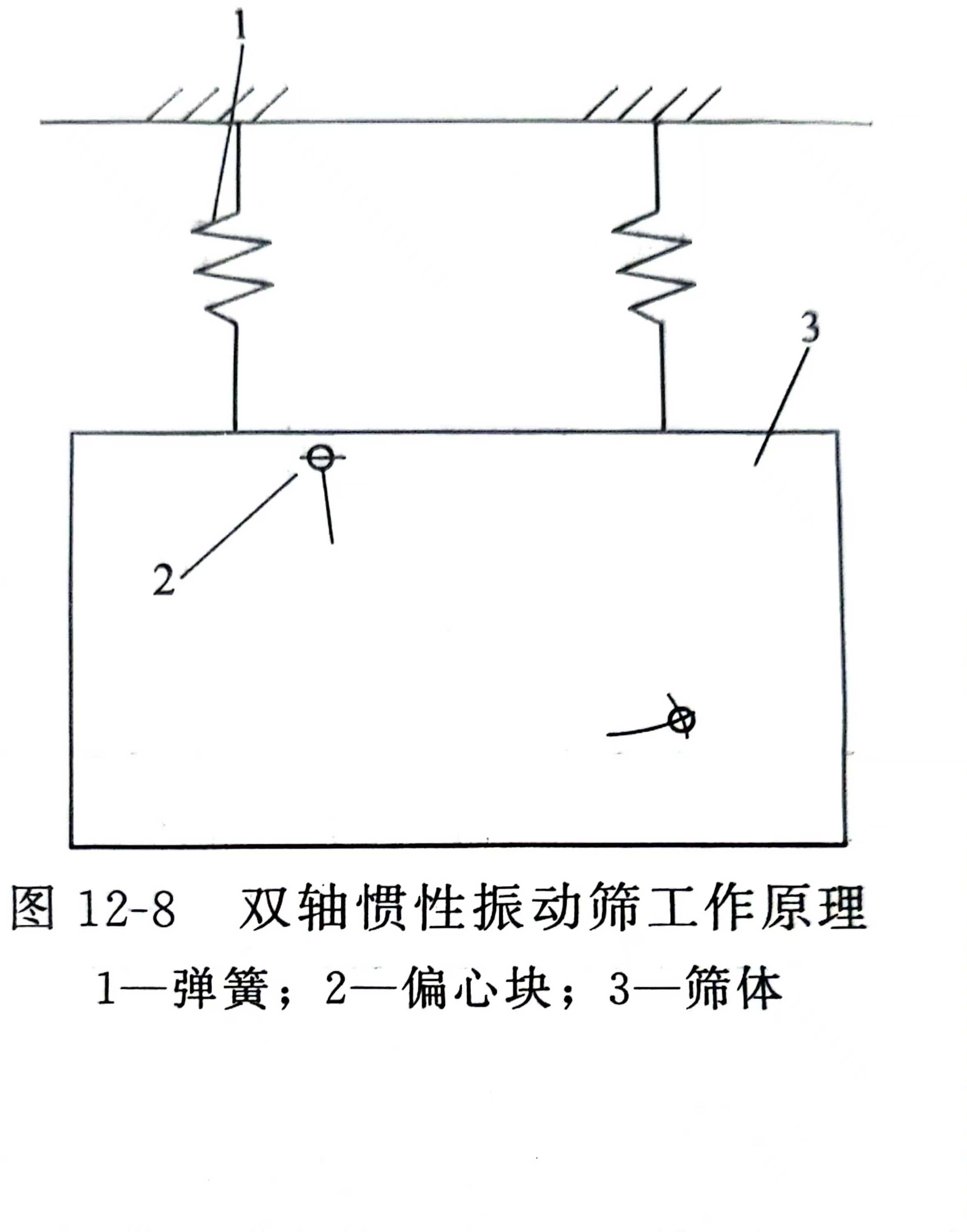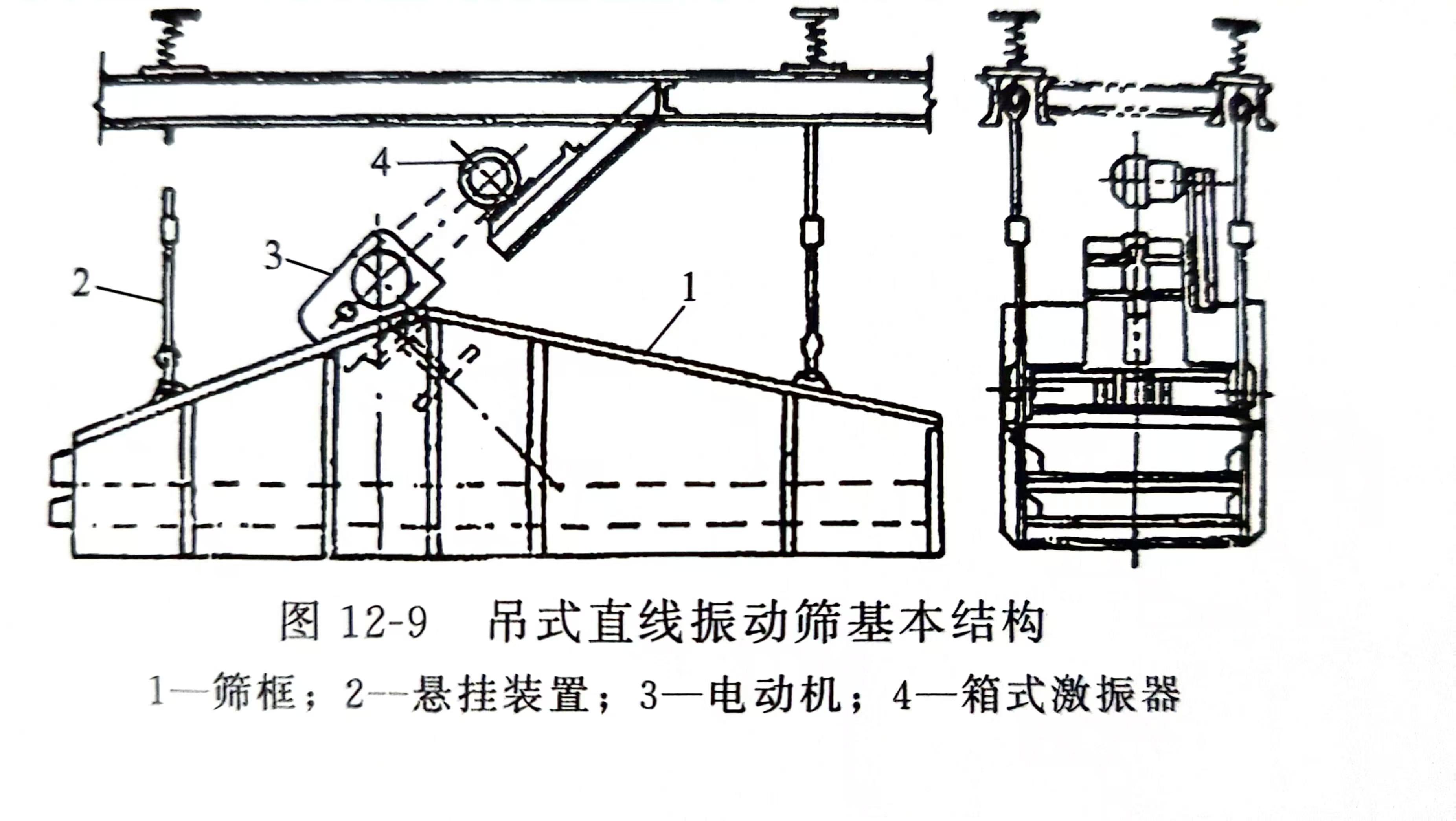 双轴惯性振动筛又称吊式直线振动筛,其基本结构如图12-9所示。