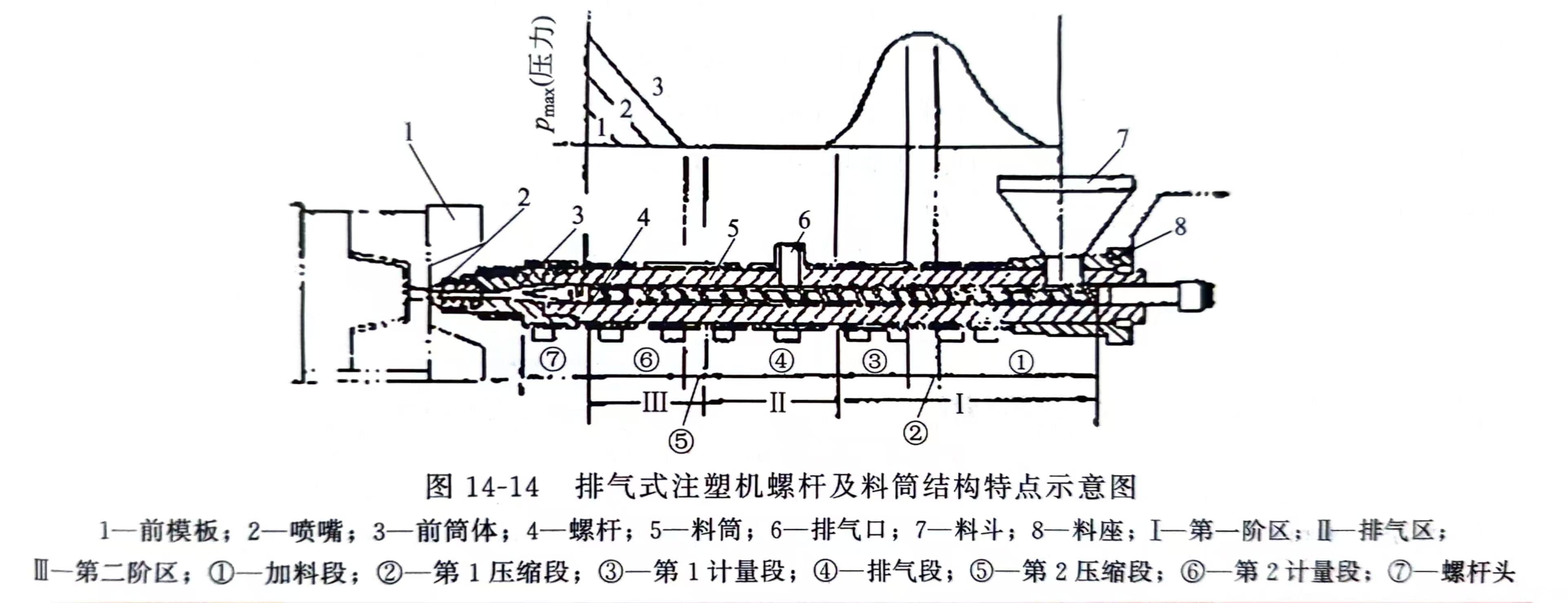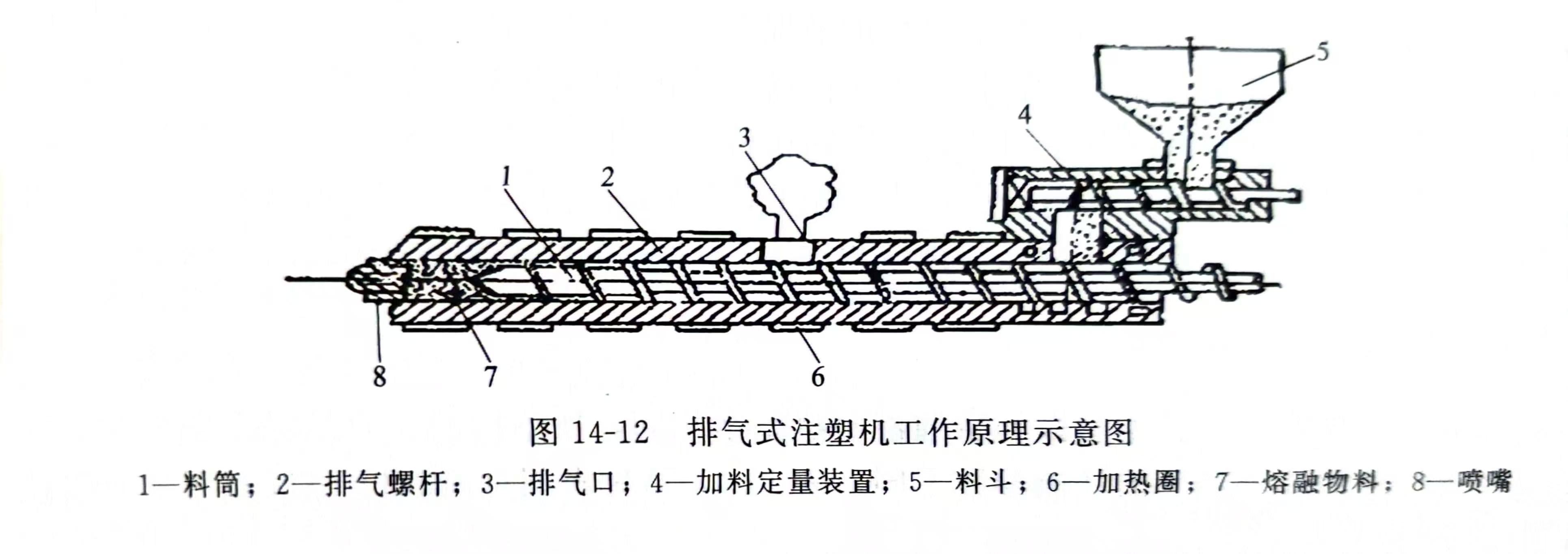 排气式注塑机工作原理如图14-12所示。