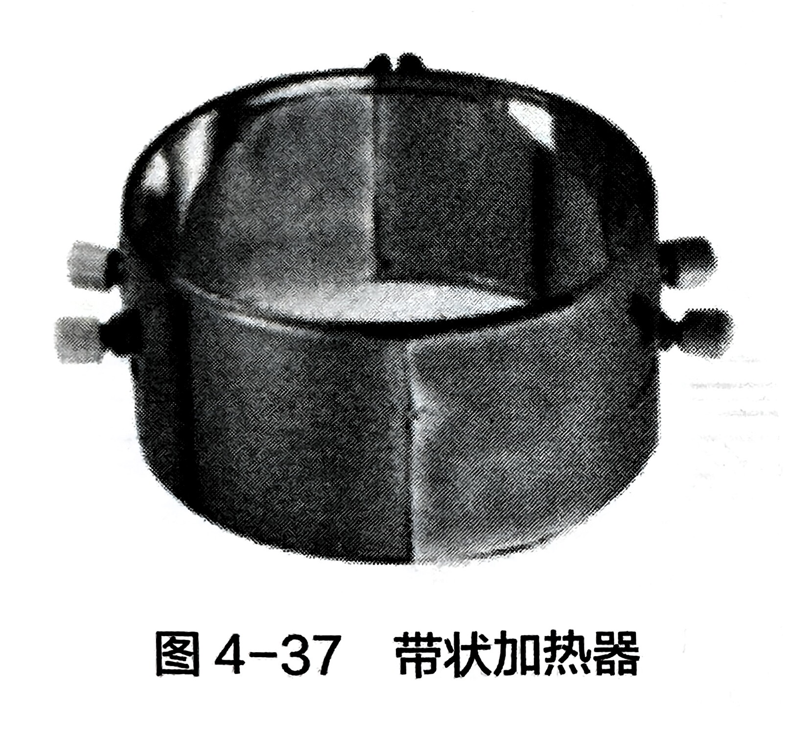 ① 带状加热器。图4-37所示为带状加热器,它是将电阻丝包在云母片中,外面再覆以金