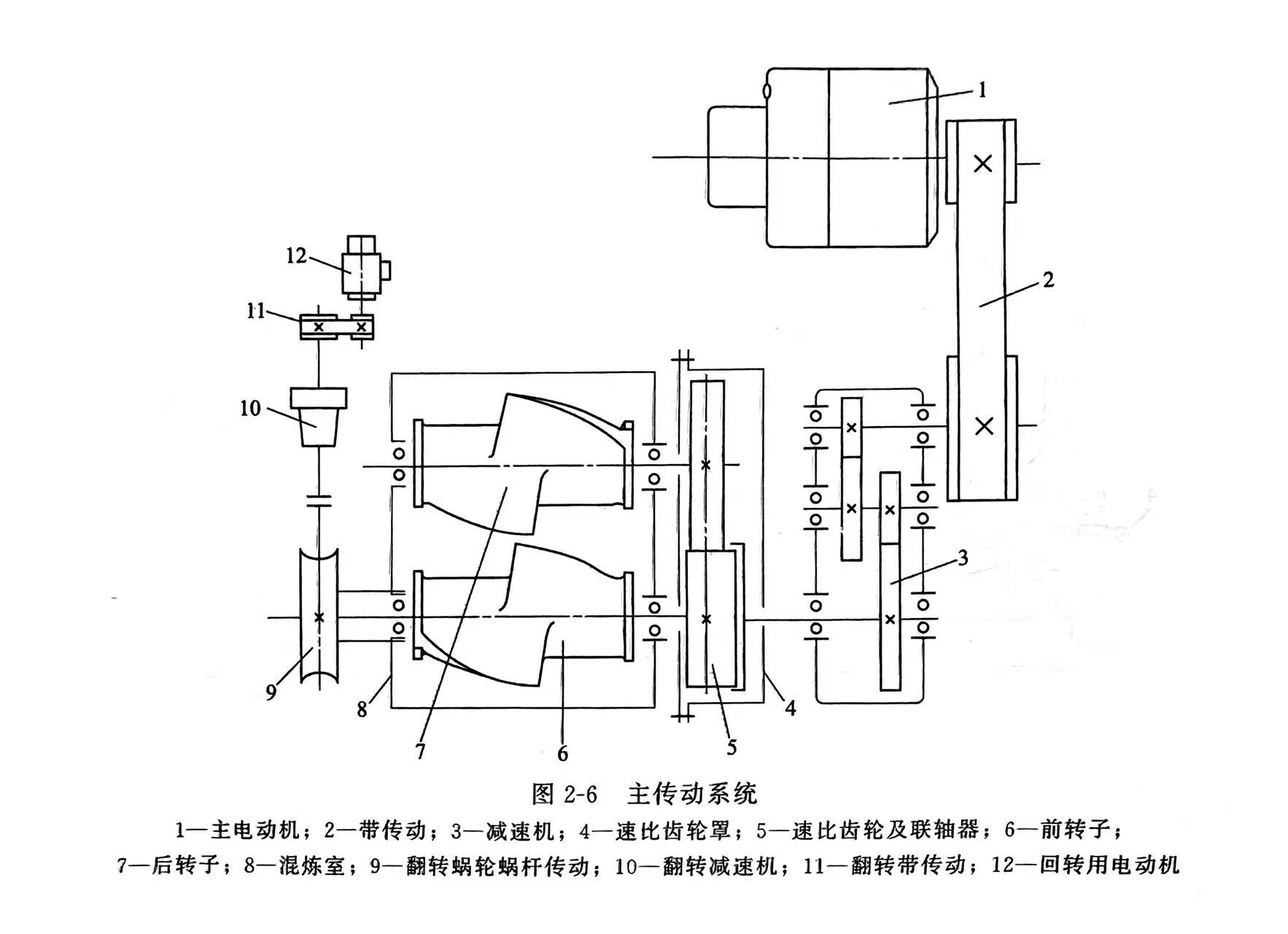 主传动系统由主电机、带传动、减速机和速比齿轮等组成,如图2-6所示。