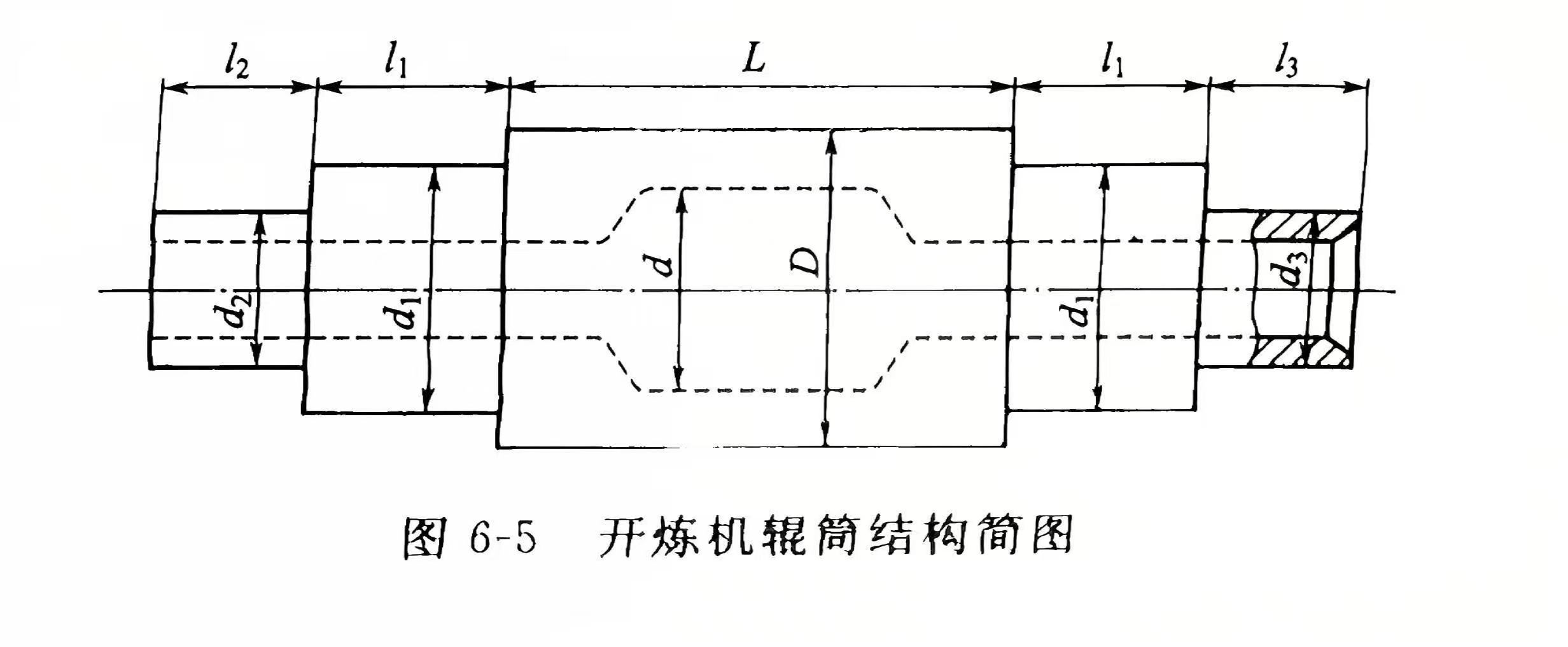 变量的标量值。图 6 - 5 为开炼机辊筒形状与各部分尺寸简图,辊筒尺寸的几何参变量为